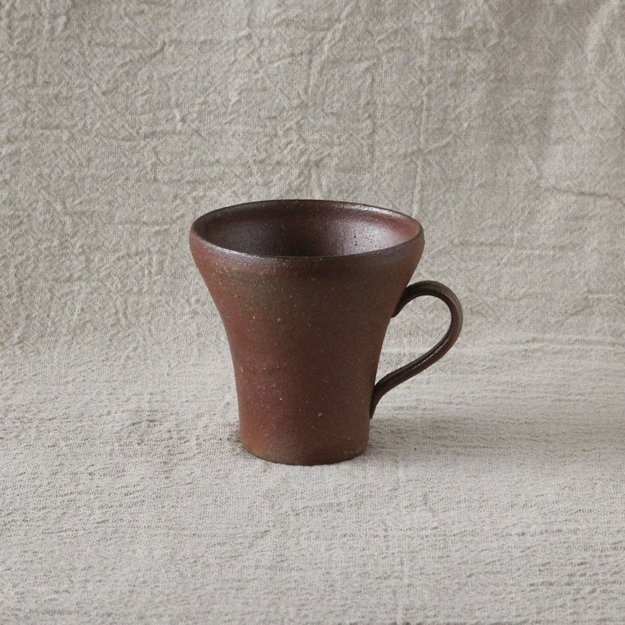 私自身も毎日これでコーヒーを飲んでいる、個人的に大好きなカップです。シンプルでもちやすく、持った感じの軽さにもこだわって作っています。鳴瀧窯でも定番の人気があるコーヒーカップです。